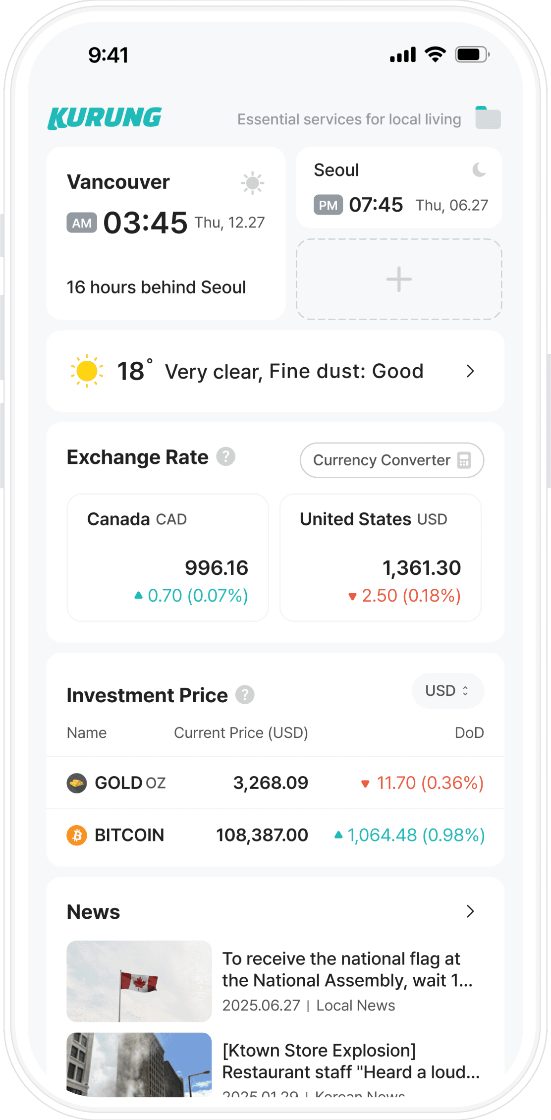 Combined Korean and local news into a single view to reduce information fragmentation and improve accessibility.
